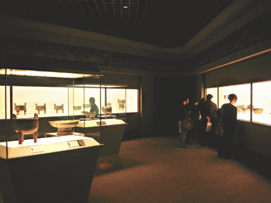 首先,特別注重中國青銅器萌生階段的作品。展品中夏代晚期的青銅爵對了解當時的青銅工藝、研究中國青銅工藝的產生與發展過程都是極其重要的實物資料。其次,注重不同類型的青銅器及其用途,展品中有酒器類爵、斝、觚、觶、卣、瓿,食器類的鼎、簋、鬲、甗、豆、敦、盆、鍑,水器類的盤、匜,樂器類的鐘,兵器類的戈、鉞、鈹、弩機。青銅器的重要門類及器類幾乎囊括在內。