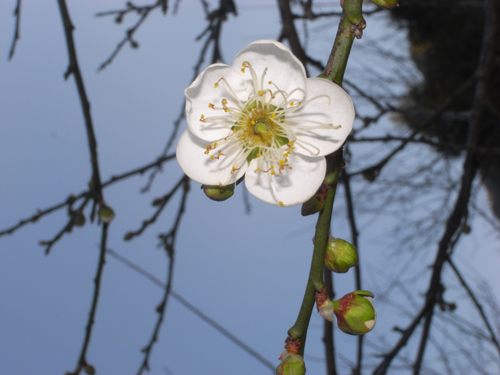 梅花,屬薔薇科,通常在冬春季節開放,與蘭、竹、菊並稱為四君子。因梅花耐寒的特性,它常被引用比喻人們堅強不屈的風骨。梅花原產於中國,後來引種到韓國與日本,品種超過300種。