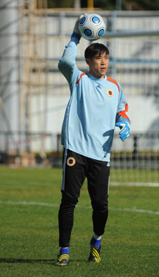 圖:張春暉將繼續擔任正選,在香港對巴林之戰把關(本報攝)
