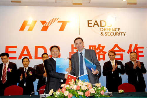 圖:HYT總裁陳清州與歐洲宇航防務集團安全網絡公司負責人簽約