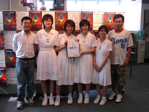 圖:指導老師莊永煜(左一)、方輝祖(右一)與楊芷蔚、陳曉茵、鄭雁心及張文雅出席頒獎禮
