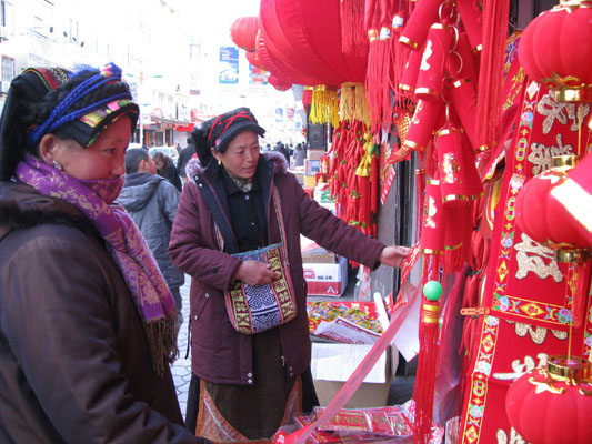 圖:在街頭置辦年貨的馬爾康群眾(本報攝)