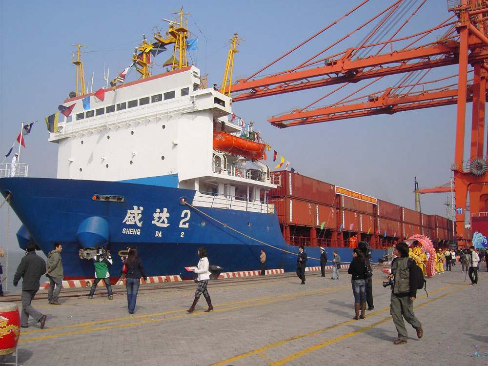 圖:首批獲准從事台灣海峽海上直航業務的「盛達2」輪在廈門港起航(本報攝)
