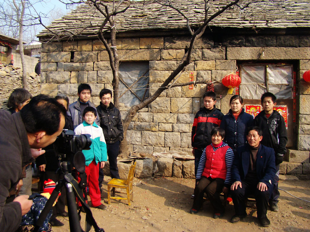 興隆莊位於沂蒙山區大山深處,當地交通不便,經濟水平落後,村民居住的仍是富有當地特色的簡易石板房,因此該村子被稱為「石頭村」,村裡許多人至今沒照過一幀全家福照片。圖為攝影愛好者免費為村民拍攝全家福照片。