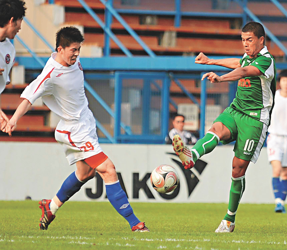 圖:公民中場馬龍(右)在禁區頂右腳叩關 (本報攝)