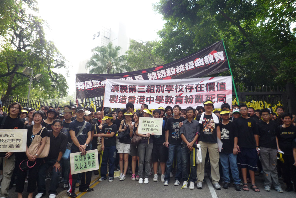 圖:港九潮州公會馬松深中學師生早前遊行請願,反對「殺校」(資料圖片)