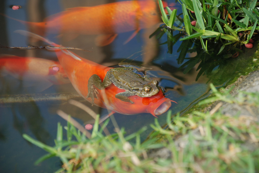 「烏龍」蟾蜍誤找錦鯉「交配」