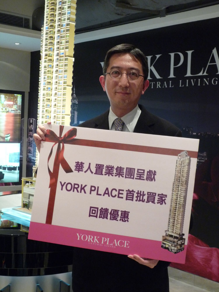 華人置業銷售總經理柯靄邦直言,去年開賣的YORK PLACE售出35伙,集團落實主動向該35個單位的買家,提供八折收樓建議,即減價20%,日內將陸續發信知會買家,接受建議的買家集團可安排渣打銀行協助提前上會,但集團不會提供二按,並重申減幅只限20%兼「無得再傾」,倘不接受建議兼撻訂者,集團不排除會追討差價。