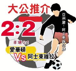 由於主隊本身近期亦漸入佳境,上一輪足總杯更氣走利物浦,相信在自己地頭可以逼和強敵。鑑於雙方一批攻擊球員均在勇態,而最近兩次對陣出現二比二和維拉勝三比二多入球的局面,故此,要貼中又好分頭,二比二是最和味及合理呢!