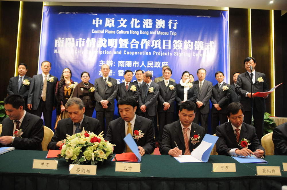 推介會暨簽約儀式昨日中午在香港南洋酒店舉行。本次活動,南陽市共帶來130個重點推介項目,涉及文化、旅遊、光學、機電、製造業、現代農業、輕工、化工、紡織、冶金、建材、醫藥等行業,其中超3億元的投資項目十餘個。