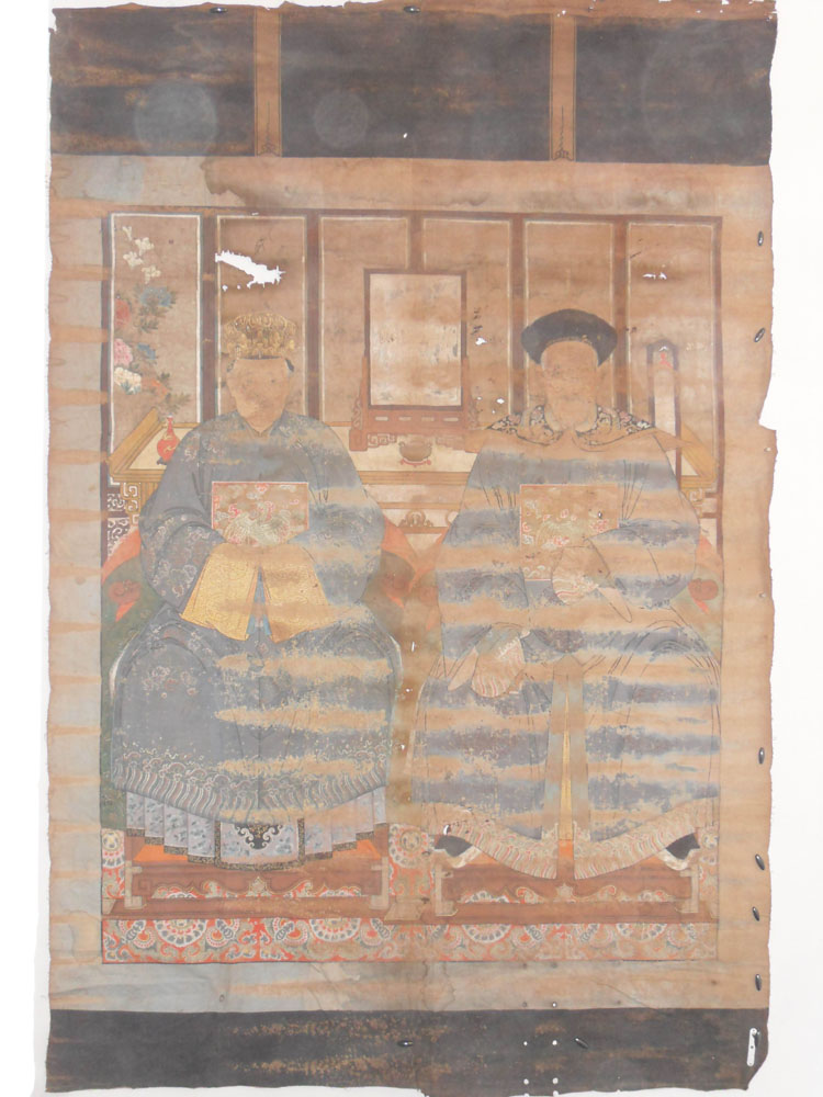 【本報記者劉巧雄、實習記者譚晶、通訊員阿軍長沙十七日電】連日來,一件由湖南管鋤非紀念館珍藏的清代巨幅曾國藩夫妻國畫像在長沙出現,引發轟動。據文物鑒定專家鑒定,這是至今惟一發現的大型布質曾國藩夫妻國畫像,彌足珍貴。該畫目前已被存放在某銀行保險箱中。