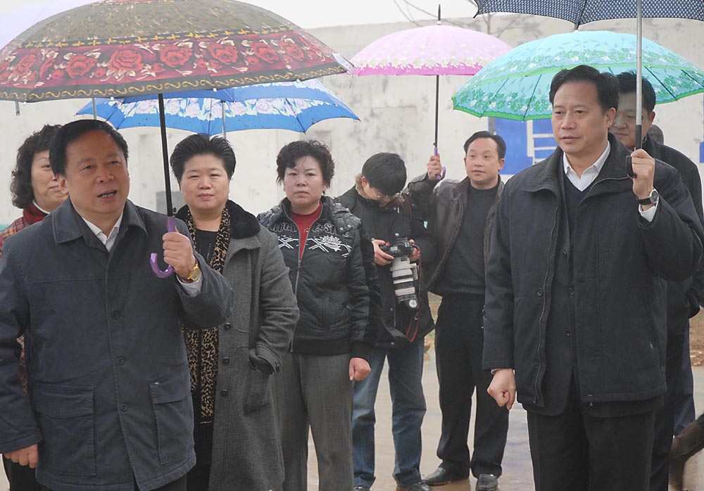 圖:洛陽市市長郭洪昌(左一)在宜陽縣縣委書記譚建忠(右一)、縣長黃曉玲(左二)陪同下在宜陽縣調研工作