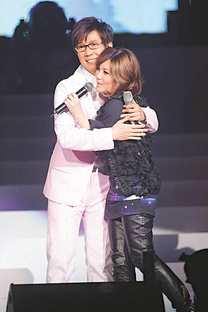 圖:梁靜茹上台獻花熱情擁抱品冠