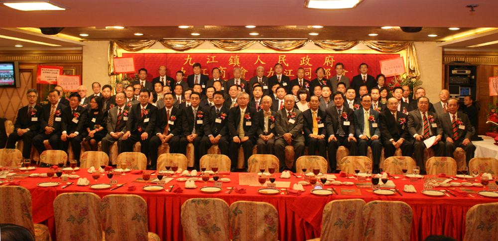 九江鎮委副書記兼鎮長潘志彬致詞時表示,他代表鎮政府及香港各鄉親團體歡迎與會鄉親,並祝身體健康,家庭幸福。他讚揚香港社會各界精英是家鄉的驕傲,他們情重桑梓,雖身在異地仍心繫故里,或投資建設、或諫言獻策、或好施樂善。為九江的發展作出持之以恆的貢獻。他代表家鄉人民表示感謝和崇高敬意。潘志彬並說,九江雖面對金融危機的衝擊,仍堅持以「物流帶動,工貿並進」的發展思路,全力打造「珠三角中西部生產資料區域性中心」。○八年的主要經濟指標繼續保持雙位數的增長;全年共啟動二十多個項目,涉及經濟建設、民生事業、公共衛生和教育文化等各方面;傳統工企業積極發展新模式,港口物流、電子商務等新興行業顯旺盛生命力。展望新的一年,九江將加強六大路網的建設,和改善民生與環境。