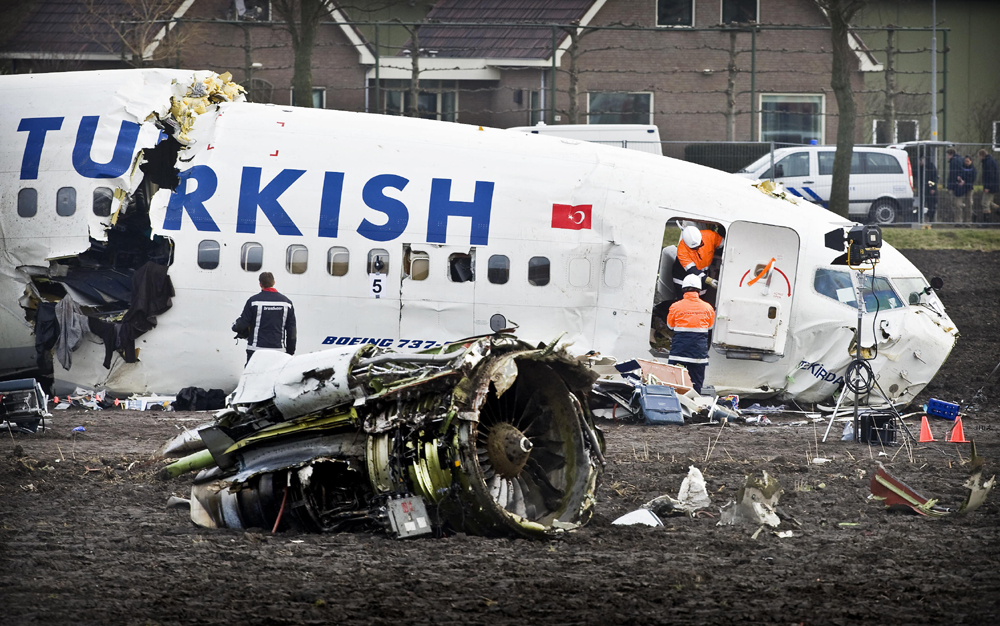 圖:調查人員正在檢查墜毀的土耳其客機(法新社)