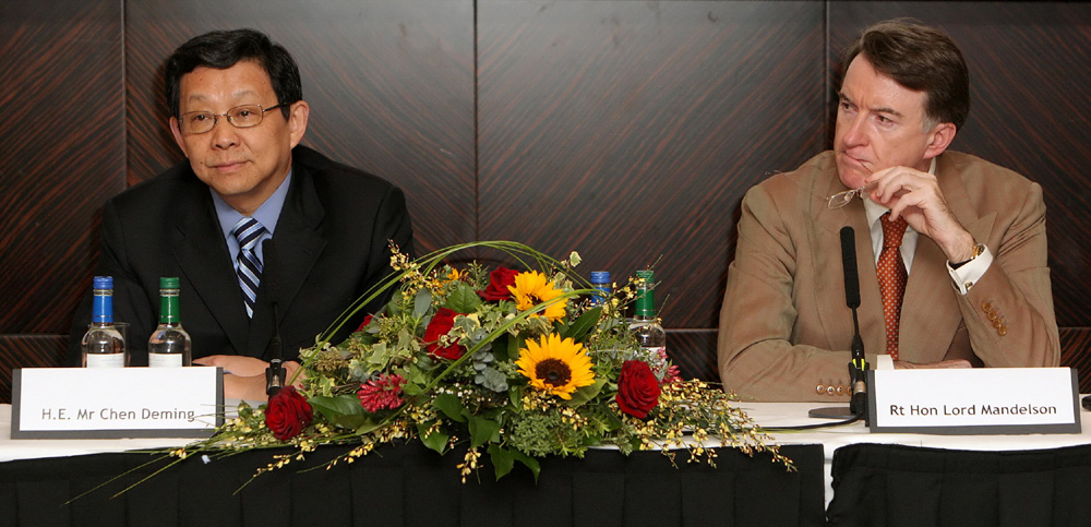 陳德銘與英國商業、企業和制度改革大臣曼德爾森共進午餐,他說,此次中國貿易投資促進團訪英,是落實溫家寶總理年初訪歐「信心之旅」的一次重要後續活動,是一次「承諾之旅」,充分表明中國政府在困難形勢下,秉持開放心態、以實際行動反對貿易保護主義的態度與決心。