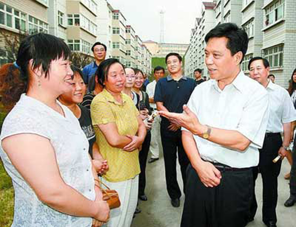 圖:河北省省委書記張雲川強調要使全省城鄉居民低保水平不低於全國平均水平,圖為張雲川(前右一)在涉縣井店鎮一街村調研時,同村民親切交談
