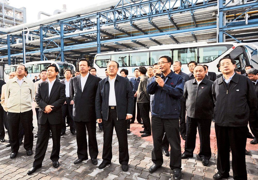 圖:蘇榮率江西考察團赴內蒙等地考察。前左一為省委副書記王憲魁,左二為省長吳新雄,右一為省委常委、宣傳部長劉上洋,右二為常務副省長凌成興。(周霖攝)
