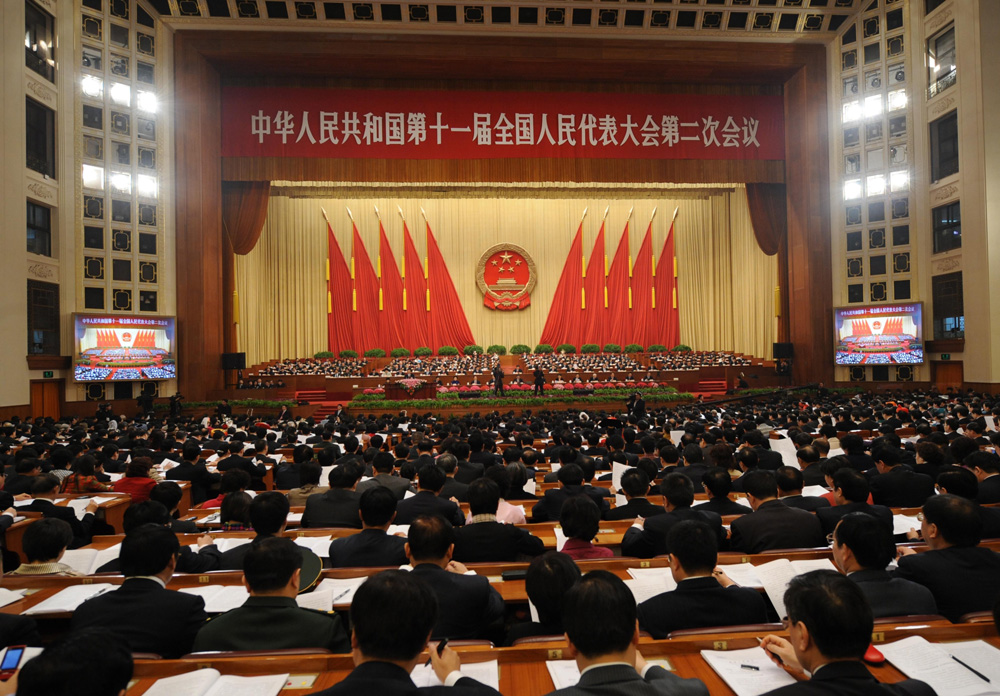 圖:3月5日人大會議在北京召開,溫家寶總理在政府工作報告中提出了「保八」目標