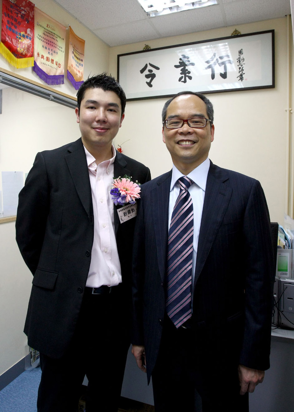 圖:劉江華讚弟子劉國勳(左)「睇得,講得,打得」(本報攝)