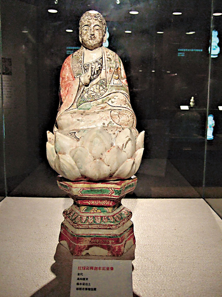 圖:(金)紅綠彩釋迦牟尼坐像,六十厘米高,目前世界上最大的瓷佛