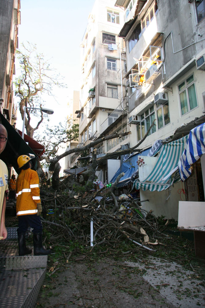意外現場為港島南區赤柱大街二十六號新成樓對開,該處街頭種有一棵高約二十三米、樹齡約百歲的刺桐樹,該棵樹被康文署列入古樹名冊重點保護,有專人定期檢查,確認並無不妥。