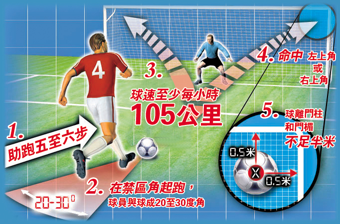圖:專家計出「十二碼必入方程式」