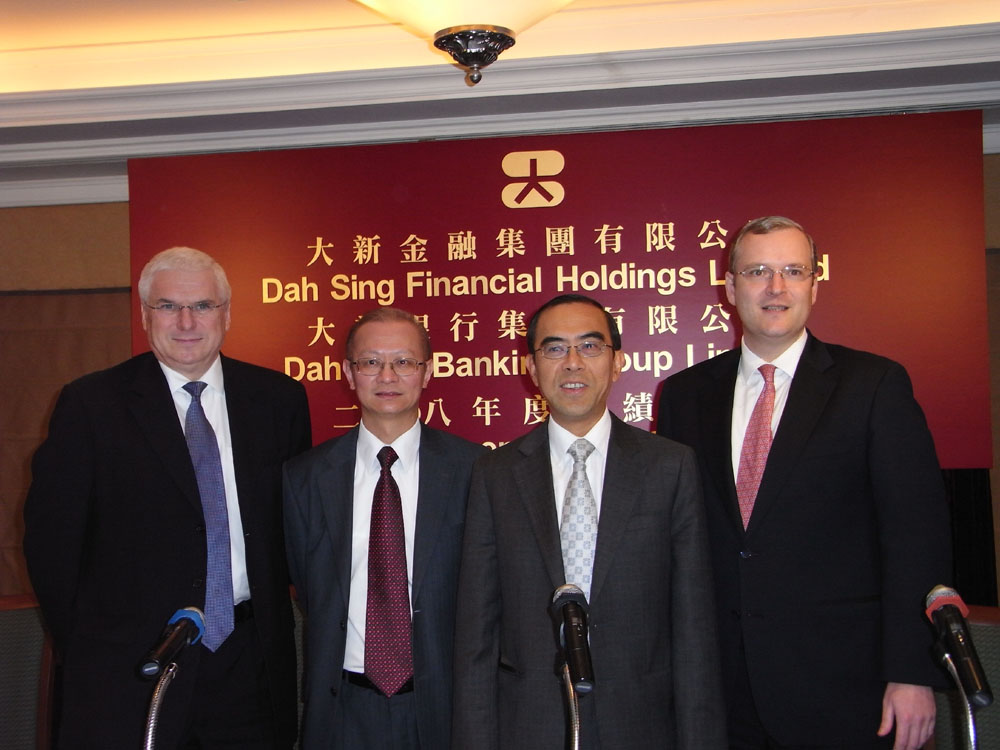 圖:左起:大新執行董事安德生、財務董事王伯凌、董事總經理黃漢興及執行董事麥曉德 (本報攝)