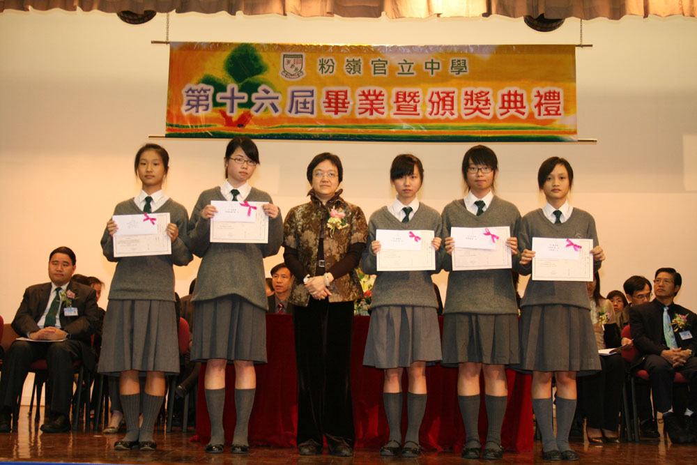 粉嶺官立中學第十六屆頒獎暨畢業禮月前舉行。校長余瑞堯作校務報告時指出,該校同學去年公開考試的成績有明顯進步,在多項校外比賽中表現優異。中學會考八科合格率較往年為高,其中旅遊與旅遊業科合格率更較全港水平高出百分之二十。高級程度會考七科合格率同樣高於全港平均水平,其中地理科和電腦應用科取得百分之一百合格成績,中國歷史(高級程度)優良率為百分之五十,歷史科(高級程度)優良率達百分之七十六點九。商科學生在英國倫敦工商會高級會計考試中亦有出色表現。