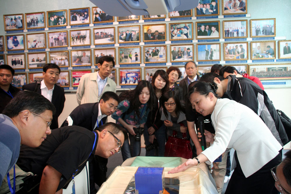 圖:採訪團正饒有興趣地在了解超聲波治療癌症的原理