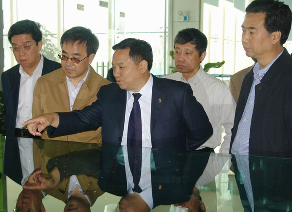 圖:邯鄲市委書記崔江水(右一)陪同河北省省長胡春華(左二)到鑫港國際商貿城調研(郗晶攝)