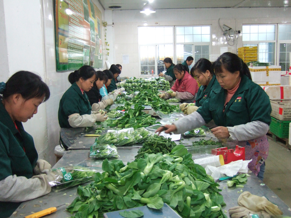 圖:供港蔬菜分檢包裝工序(本報攝)