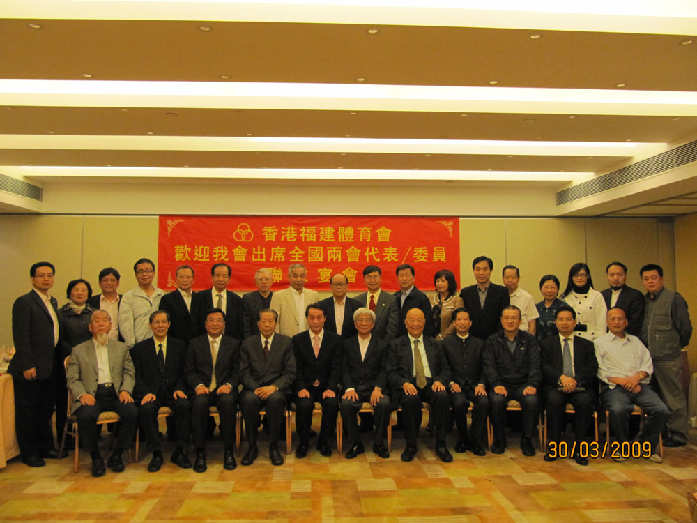 【本報訊】舉世注目的全國兩會已經勝利閉幕,港區人大代表、政協委員已陸續返回。為加強交流,進一步領會兩會精神,香港福建體育會日前在銅鑼灣世貿中心宴請該會出席全國兩會的人大代表、政協委員。全國政協委員李群華永遠榮譽會長、全國政協委員兼人口資源環境委員會副主任、永遠榮譽會長林樹哲、全國政協委員兼文史資料委員會副主任、永遠名譽會長施子清、全國政協委員兼外事委員會副主任、永遠名譽會長盧文端、全國政協委員、永遠名譽會長盧溫勝、全國人大代表、常務顧問蔡素玉、全國人大代表、顧問黃玉山等欣然出席晚宴,該會會長蘇千墅、理事長施維雄、監事長陳守仁,副會長陳瑞添、莊榮洲,常務副理事長施華民等率同仁在會場迎接嘉賓,大家歡聚一堂,相互交流,暢敘心得。