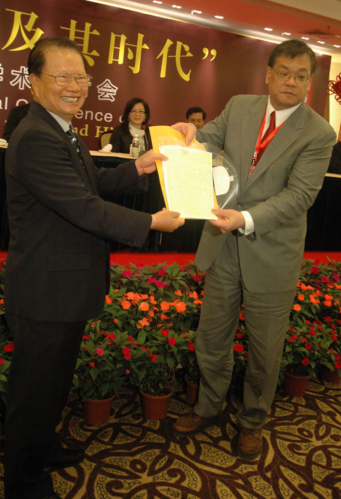 【本報記者曾媛園文昌六日電】今天上午「宋耀如及其時代」國際學術研討會開幕式上,宋氏家族後人與文昌市政府代表互贈禮物。