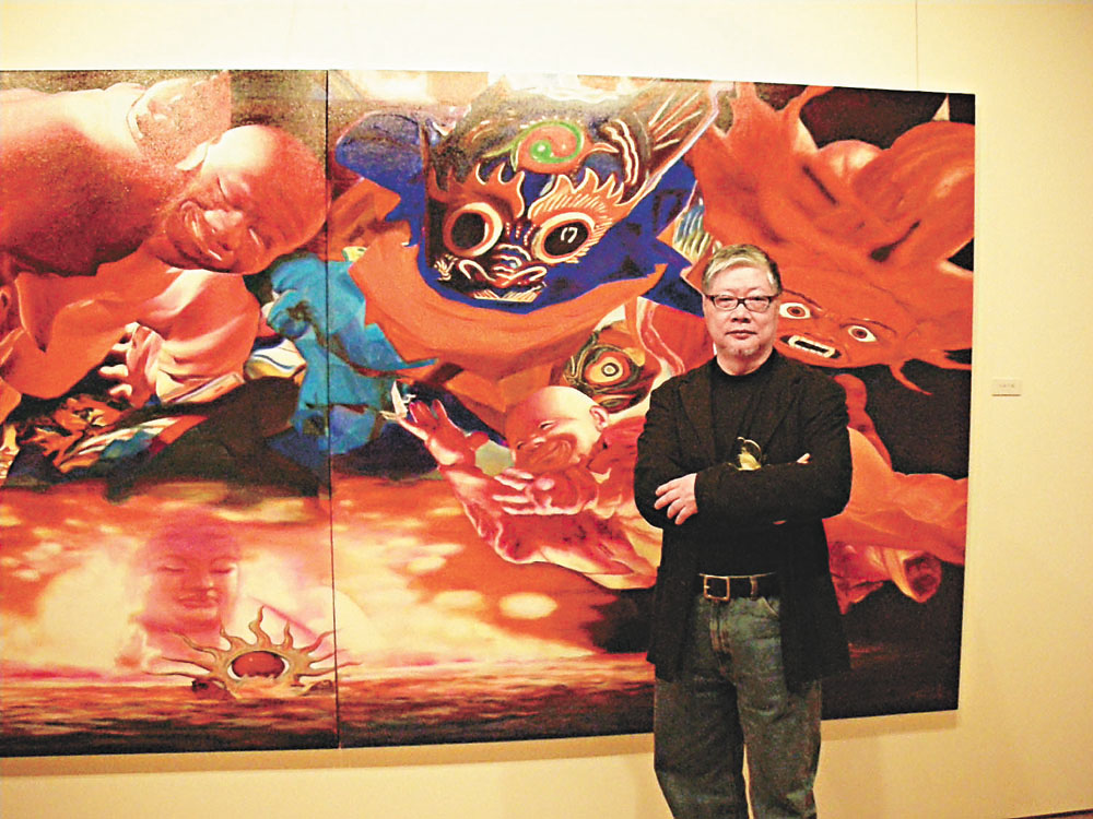 圖:林文強攝於他今年的新作品《末法之亂》前