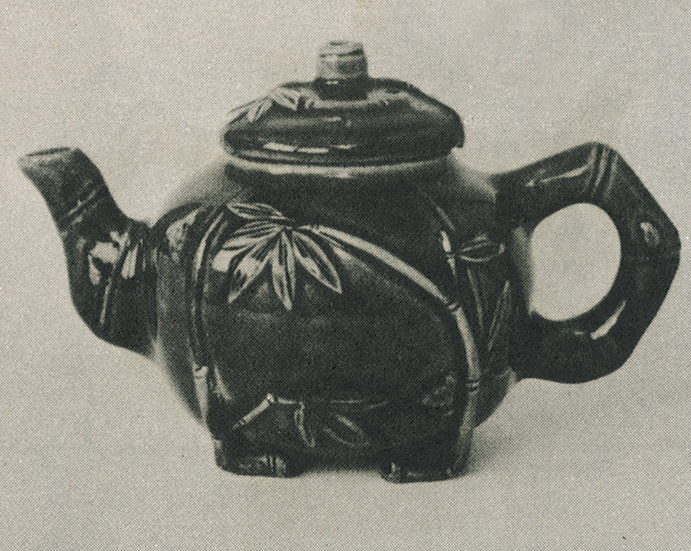 通常談及廣東佛山石灣陶塑,鑑藏家大多數較偏重清代中期至晚清期間名家親手燒製的陶塑人物像和動物。例如陳渭岩、霍津、黃古珍、林棠煜、潘玉書、陳古齋、何炎、黃炳、劉永傳等名家的代表作,而忽視了石灣所燒製的日用器皿。其實有些「窰變」及釉色均十分特別;像附圖為晚清時期燒製的石灣藍釉貼竹葉枝陶壺,原作釉色鮮潤平滑,特具一種誘人的魅力。