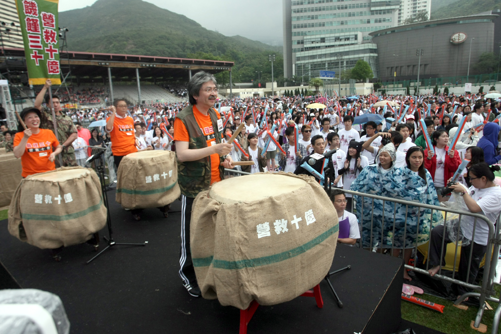 圖:曾俊華昨在香港仔運動場主持「饑饉三十2009」開幕禮(本報攝)