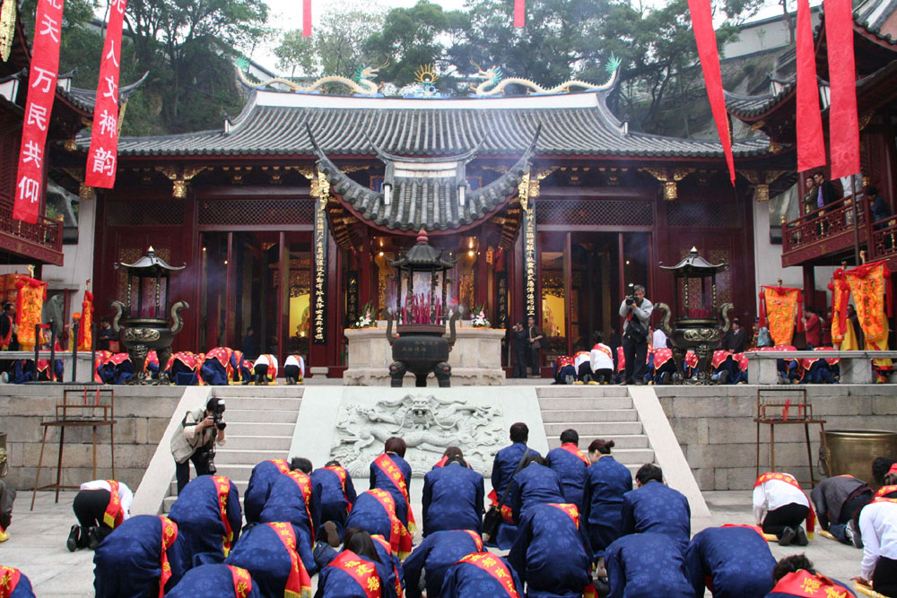 【本報記者史兵福州十八日電】今天是媽祖誕辰1049歲周年紀念日,福州馬尾區在嬰豆山麓隆重舉行福建船政天后宮復建後的開光大典。全國道教協會副會長張金濤,中華媽祖文化交流協會副秘書長、湄洲媽祖祖廟董事周金琰,台灣玉京山道統協會總裁盧復順,兩岸道教與文史界名人,以及廣大媽祖信眾一千多人參加了開光儀式。馬尾區委書記鄭有光、區長林新國為福建船政天后宮修復揭碑。