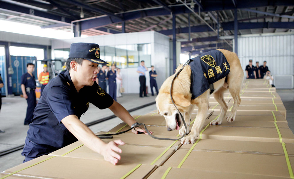 深圳海關先後共有十九隻緝毒犬投入使用,在深圳關區尤其是深港口岸現場對進出境貨物、物品、車輛等進行檢查,至今共查獲毒品共計十七點六公斤。