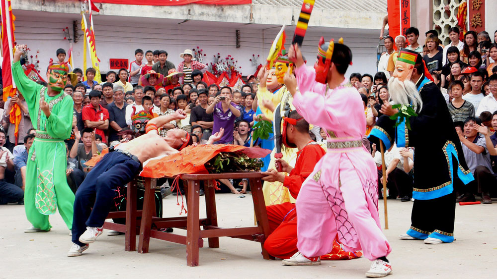 昨日是廣東省湛江市麻章區舊縣村的傳統節日「年例」,當地群眾表演「湛江儺舞」、「滾刺床」等民俗節目慶祝「年例」。「湛江儺舞」造型粗獷,莊嚴威武,歷史悠長,2008年6月被列為國家級非物質文化遺產。