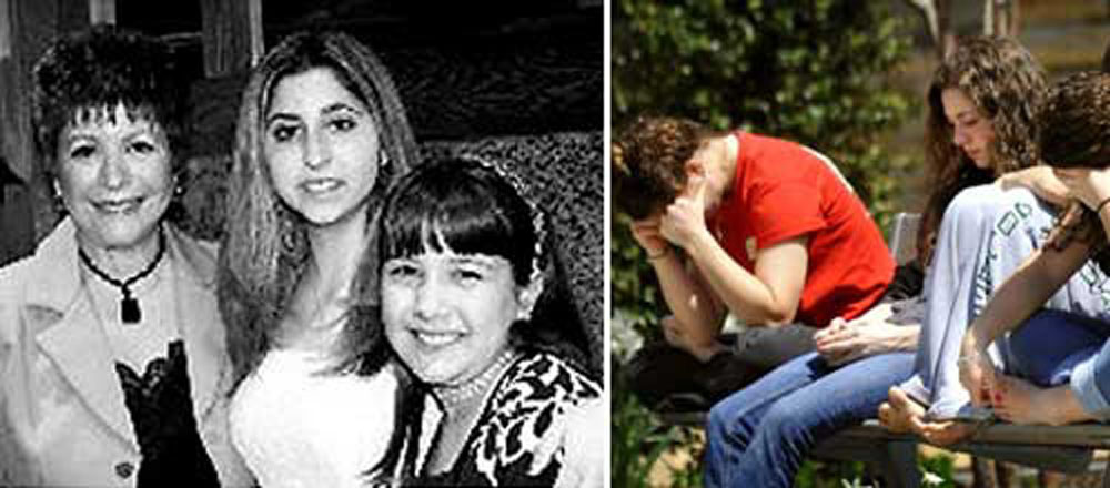 圖:遇害的母親(中)和兩個女兒。右圖為遇難長女的同學神情哀傷(互聯網)