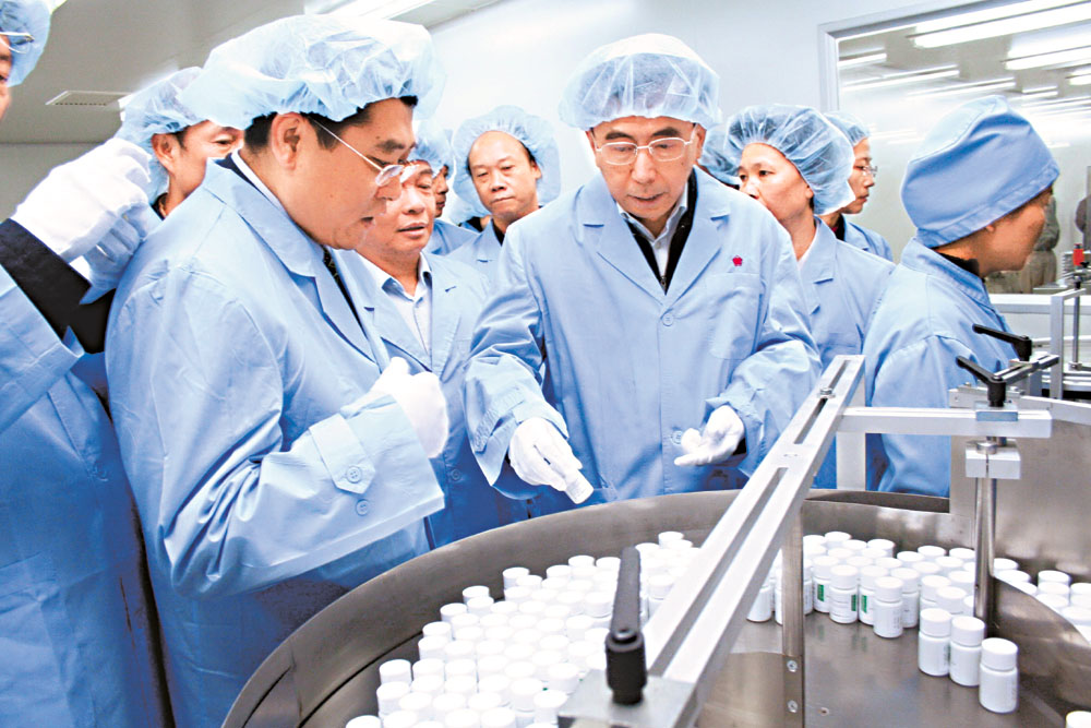 圖:廣州市委書記朱小丹在廣州中一藥業參觀調研時,高度評價了中一藥業在危機中採取的積極應對措施