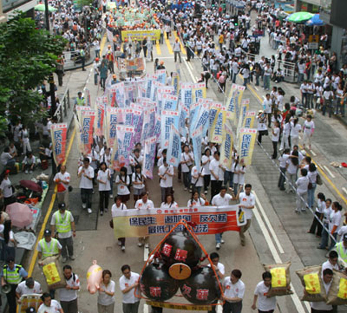 圖:08年「五一」勞動節,工聯會舉行「保民生、遏加風、反欠薪」大遊行,數千人參與