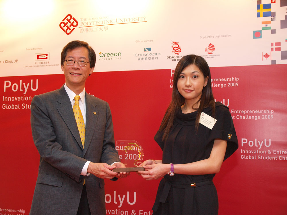 理大昨日舉行支票頒贈儀式,理大校長唐偉章在活動中感謝工商各界對「國際學生創新挑戰賽」捐出七百萬元,出席嘉賓有旭日國際集團有限公司執行董事蔡加怡、周亦卿及Dirk Dalichau等。
