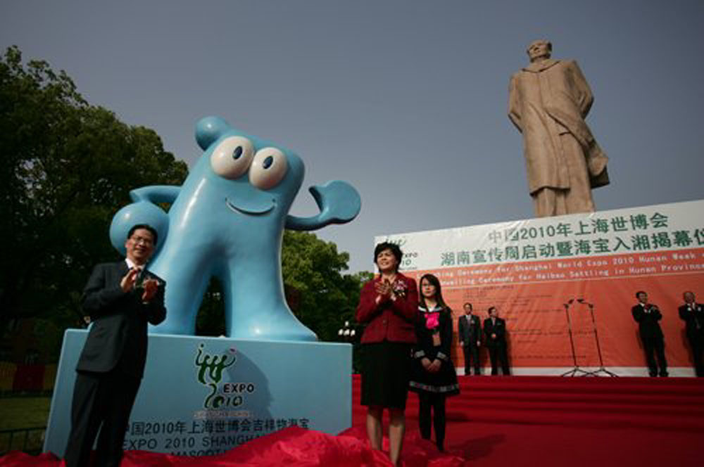 4月20日上午,上海世博會吉祥物「海寶」入湘揭幕儀式在湖南大學東方紅廣場舉行,湖南省人民政府副省長、湖南參博籌委會常務副主任甘霖與民建中央副主席、上海市政協副主席、上海世博會執委會副主任周漢民出席儀式並為「海寶」揭幕。上海世博局國內參展顧問黃耀誠主持揭幕儀式。湖南省人民政府、上海世博會執委會有關領導、國內外相關專家學者、高校學生、國內外新聞媒體共300人參加了揭幕儀式。