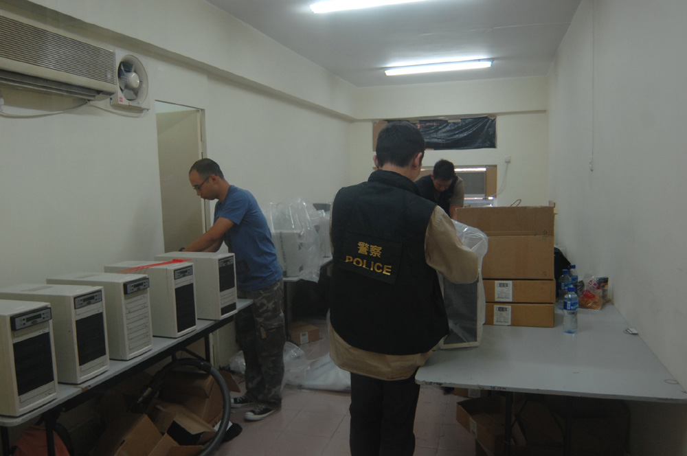 探員搜查單位時,所有電腦器材仍在燒錄盜版色情光碟。經點算後,共檢獲兩台電腦、一百二十台光碟燒錄機(每台可同時燒製五隻光碟)及相關器材,總值約二十萬元。同時發現一萬隻色情光碟,以市價每隻約四十元上下推算,約值四十萬元。估計工場每日可生產約五千隻色情光碟。