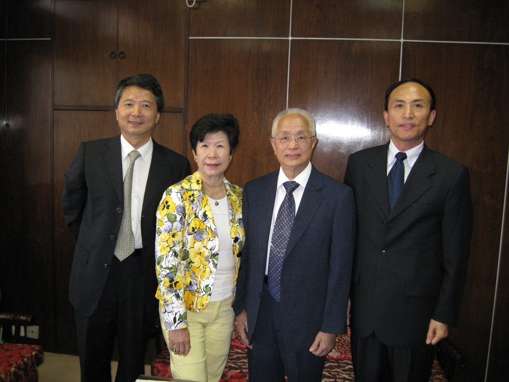圖:中聯辦宣傳文體部部長郝鐵川(左一)與副部長司錦泉(右一),特地拜訪了陳君實伉儷,轉達了中央領導對他們的親切問候,同時也代表中聯辦主任高祀仁及副主任彭清華、李剛等對陳老先生對祖國內地所作的各項善舉表示衷心感謝