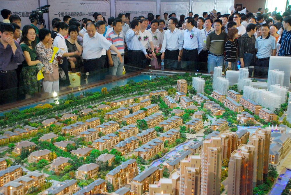 圖:內地房地產業長遠看好。圖為江蘇省宜興市房交會人頭湧湧