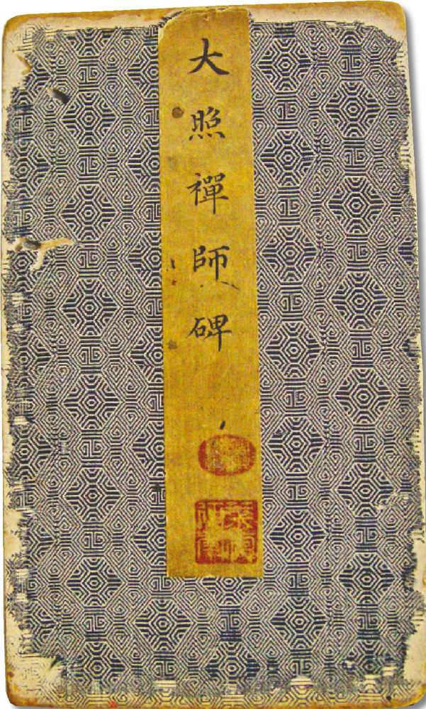 此《大照禪師碑》1冊紙本,乃懋勤殿李邕法帖之初拓本,墨色烏黑如漆,字口鋒棱如新,書法亦為李邕經典之作,誠為不可多得之上好佳拓。卷末刻「康熙二十九年庚午夏四月十六日奉聖旨模勒上石」隸書2行。此帖前有「嘉慶二十五年六月二十五日奉敕賜禮部右侍郎臣那清安」題字。當為內府珍本。何紹基以未能見此碑而引為終身憾事。張伯英《碑帖論》考訂云,此內府拓本乾隆時已為罕見。