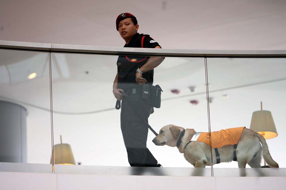 商場保安攜犬巡邏